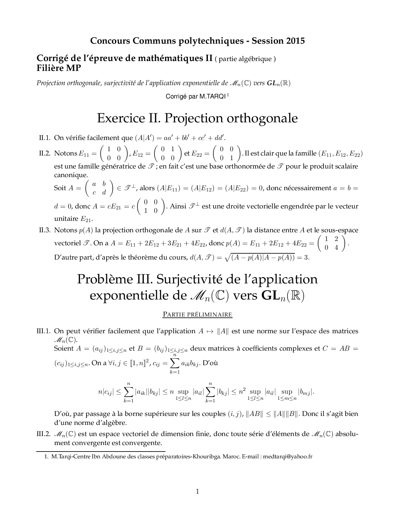 CCP Maths 2 MP 2015 Corrigé AlloSchool , Pc 2024 answers and solutions set 5 answers 1.